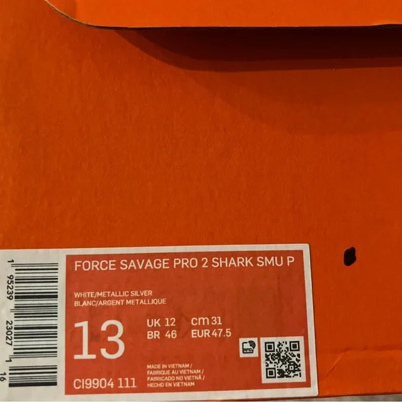 Size 13 Nike Force Savage Pro 2 Shark Ohio State PE Football Cleats White NEW. Color is white/red. Men’s size 13. Brand new with box. Rare Ohio State player exclusive cleats....
