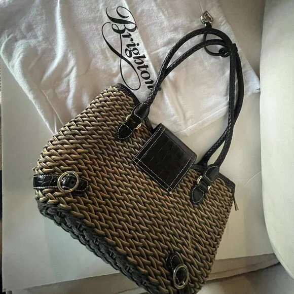 Brighton Straw Beige Bucket Shoulder Bag