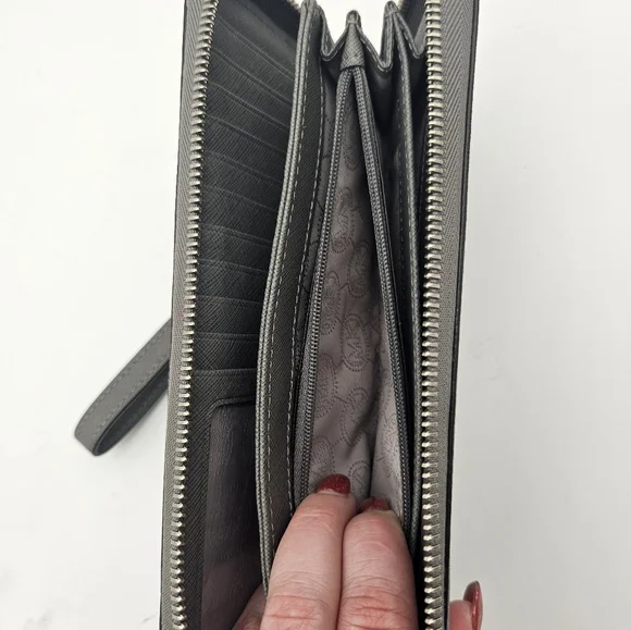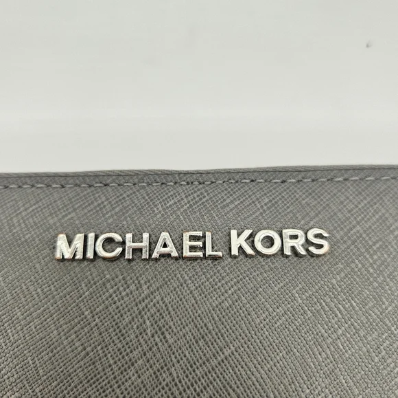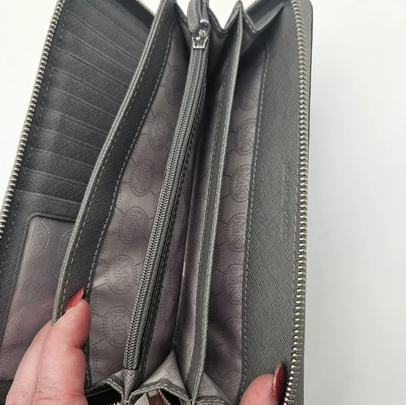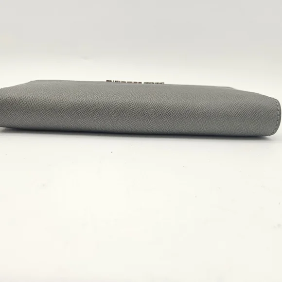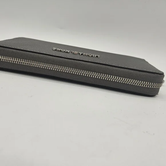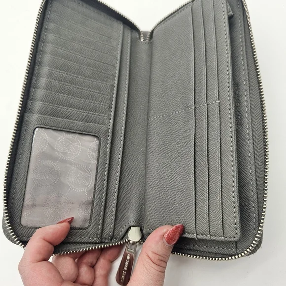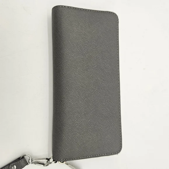 Michael Kors Large Continental Leather Long Zip Around Wallet Wristlet Gray