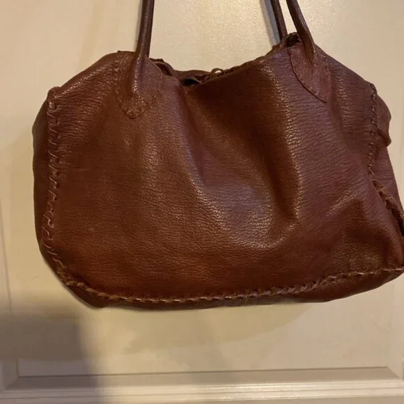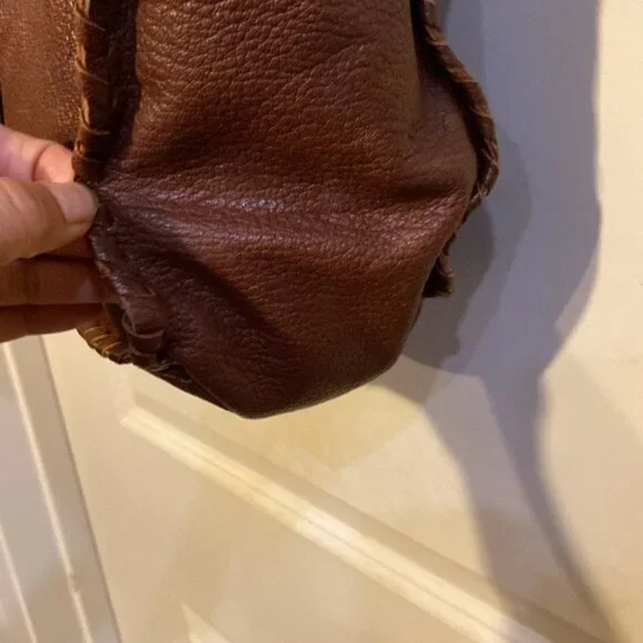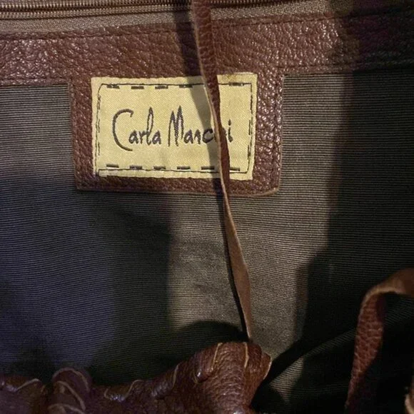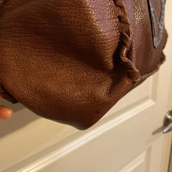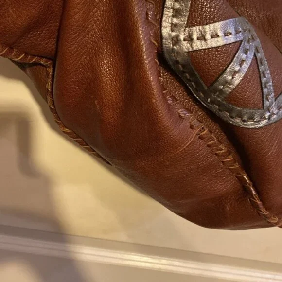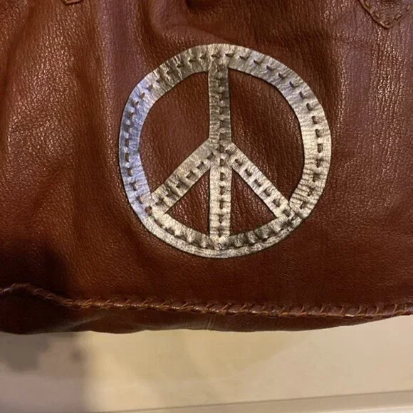 New Carla Mancini brown sift calf leather Peace Sign Tote