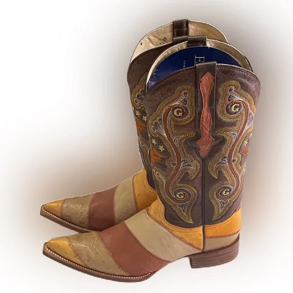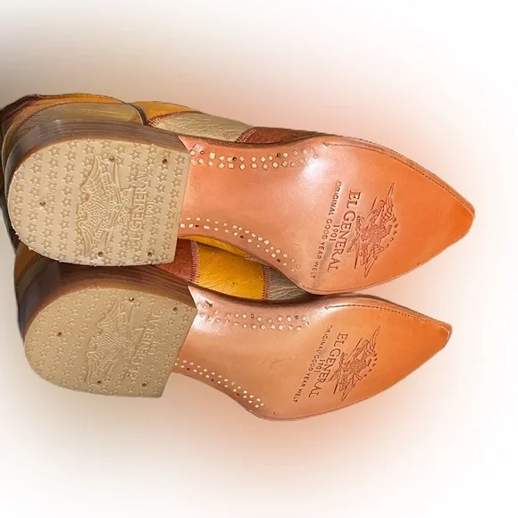 AUTHENTIC El General Mens Brown Embroidered Leather Heels Block Cowboy Boots