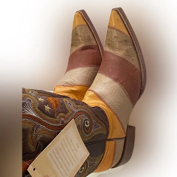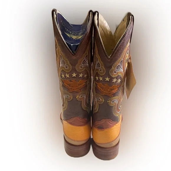 NEW NEW NEW NEW El General MENS Brown Embroidered Leather Heels Block Cowboy Boots