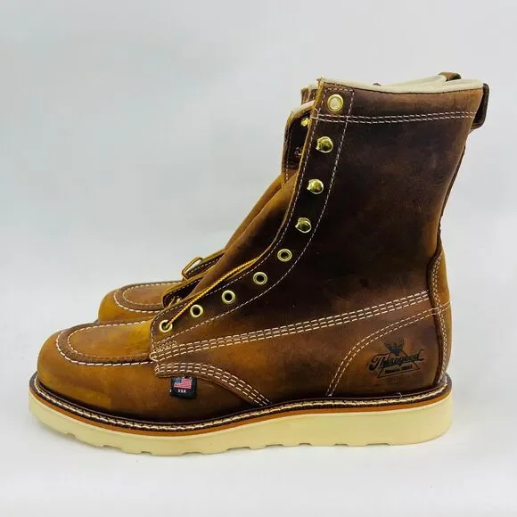 THOROGOOD MENS 8" NON-SAFETY TOE COMFORTABLE "MOC" WORK BOOTS 814-4178 SIZE 9DMSRP: $260 DESCRIPTION:Looking for great coverage, protection, and support for your ankles and a work boot that’s as durable as you are? These American Heritage 8″ Trail Crazyhorse moc toe work boots are here to save your day. A great option for occupations that require a slightly taller boot, the soft MAXWear Wedge® outsole delivers both comfort and slip resistance, while the Trail Crazyhorse leather uppers are pliable and durable. With moisture-resistant Goodyear storm welt construction, they’re fully serviceable, so you can restore them to like-new condition – because we know that you’ll want to keep wearing your favorite pair.FEATURES: * Soft Toe * Men´s Thorogood 8" Wedge Sole Work Boot (U.S.A.) 814-4178 * Trail Crazyhorse Leather Upper * Goodyear Storm Welt Construction * Removable Dual Density Ultimate Shock Absorption™ Insert on Poron® Comfort Cushion Insole * Composite Shank * Thorogood´s Exclusive Oil & Slip-Resistant Polyurethane MAXWear Wedge OutsoleBY SHOPPING WITH CRAZY SHOE DEALS, YOU’RE CUTTING OUT THE MIDDLEMAN. WE DELIVER FACTORY FRESH SHOES RIGHT TO YOUR DOOR AT DISCOUNTED PRICES YOU CANT FIND ANYWHERE ELSE. *****