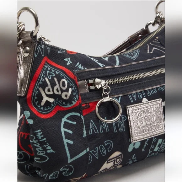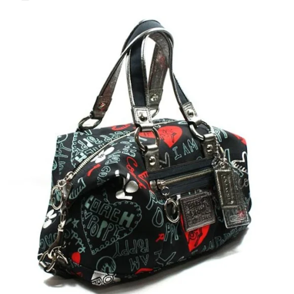 COACH Graffiti Heart Tote Bag Poppy Signature Glam Multi Color