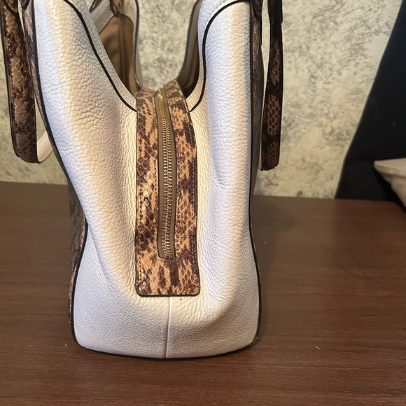 Coach Signature Shoulder Bag In Cream and Brown with Snakeskin trim; barely used