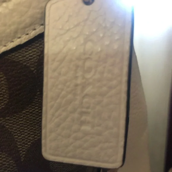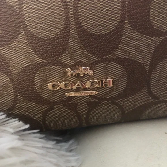 Coach Signature Shoulder Bag In Cream and Brown with Snakeskin trim