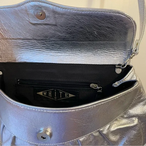 Gorgeous metallic silver leather purse by Kim White.Excellent condition.From website: “Kim White Handbags & Belts was established in 2003 in Los Angeles, California...Kim’s belts and bags are all made in the USA with the finest craftsmanship, made by real people, one by one. This specialty line of leather goods is made to last, with attention paid to the finest quality craftsmanship…Craftsmanship is key, only gorgeous high quality leathers are used, and styles are designed to withstand temporal trends.All proudly designed and hand made in the U.S.A.Kim White lives and works in Highland Park, California.”