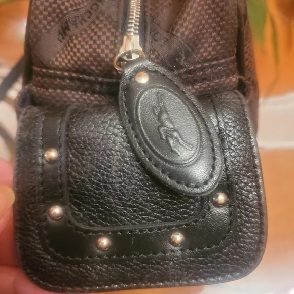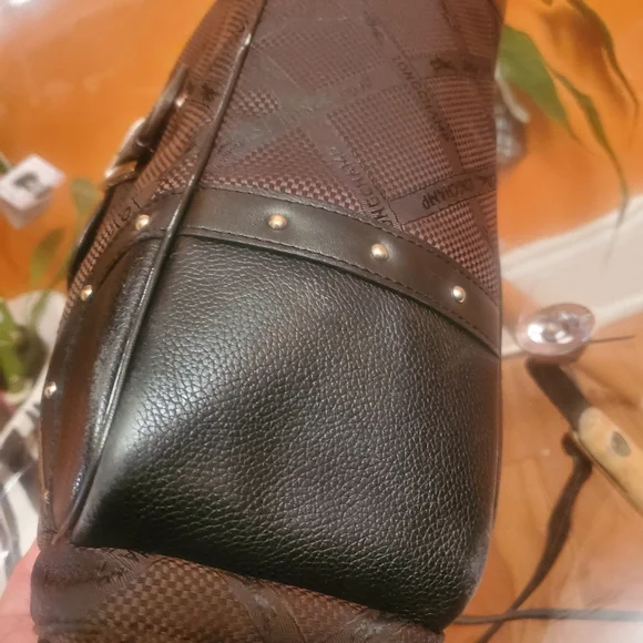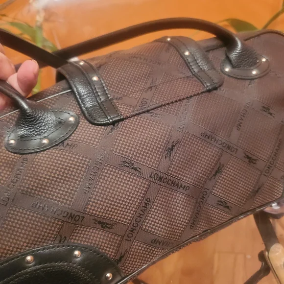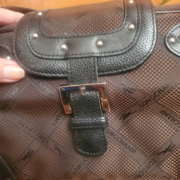 beautiful Longchamp bag with leather accent lovely color brown and black leather still on good condition thank you for looking