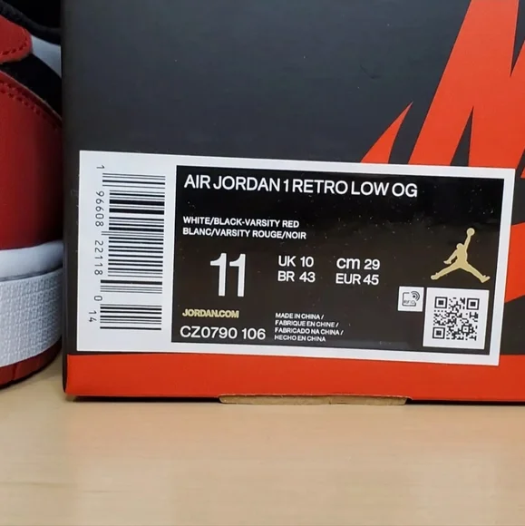 Air Jordan 1 Low OG ´Black Toe´Mens: Size 11Color: White Black Varsity RedStyle Code: CZ0790-106Condition: New with boxAll items listed are 100% authentic, purchase with confidence.Shipped within 48 hours of purchase with tracking number update.Feel free to message us with any questions. Thank you