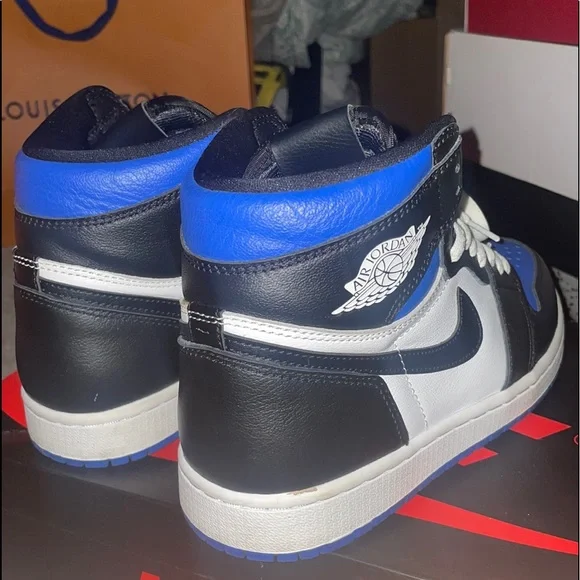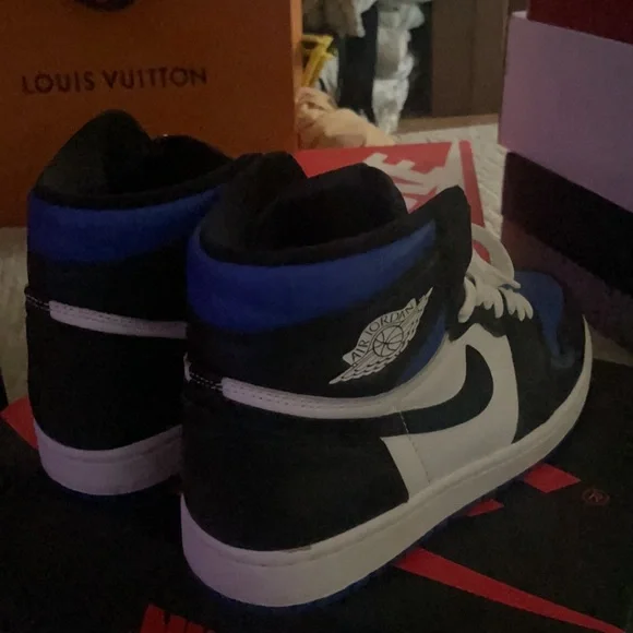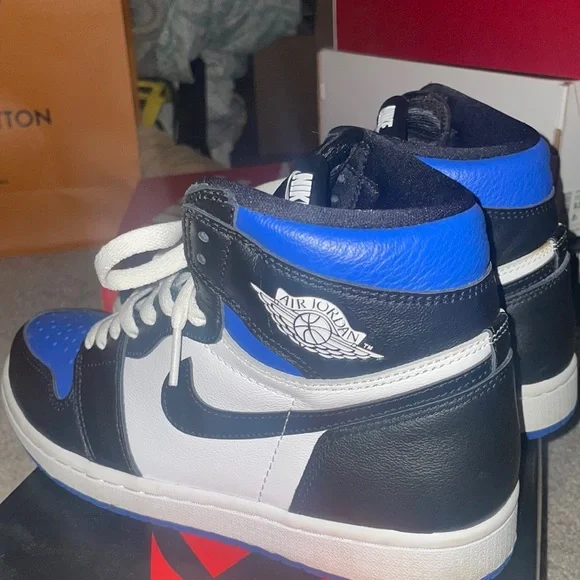 mens used nike air jordan 1 high ‘royal toe’size 8 menscomes with boxthese were worn alot less then other pairs on my pagecondition 9/10check stockx and goat prices for used...