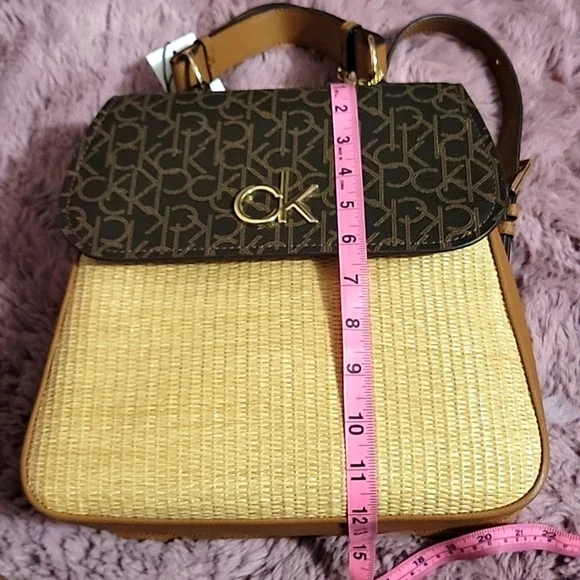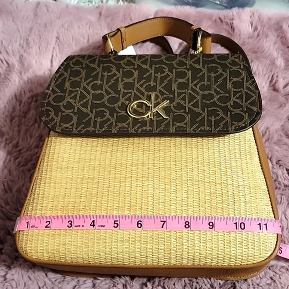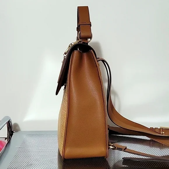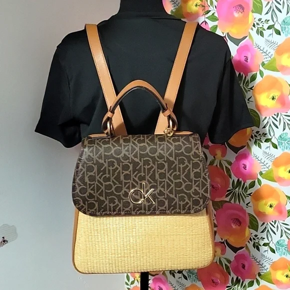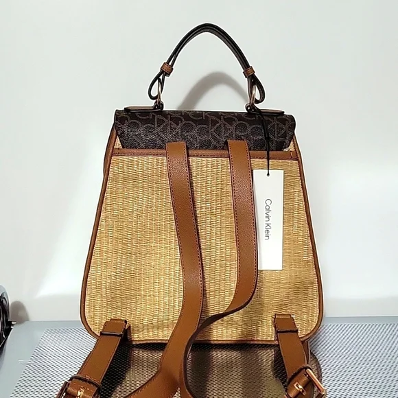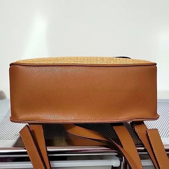 Straw Monogram Backpack. Beige/Brown/Black. Medium