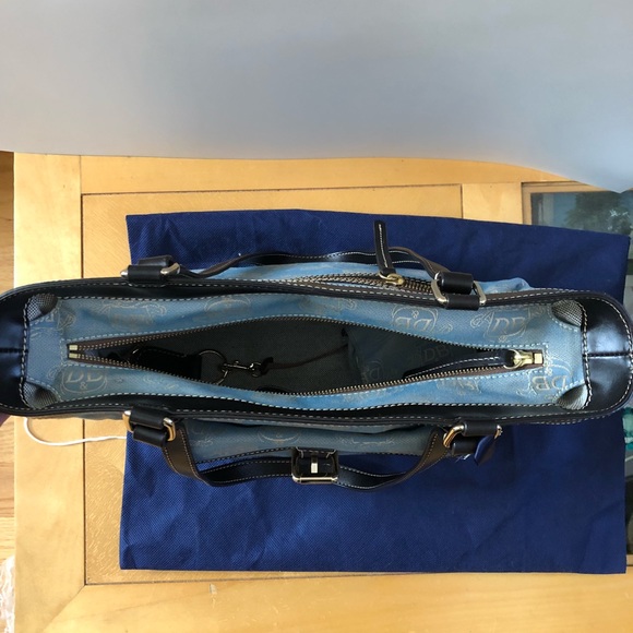 Authentic Dooney & Bourke Handbag, Black/Brown/Blue Color, Includes Dustbag & Coin Purse, Clean inside and out, Includes registered card w/ number censored in pictureDimensions:...