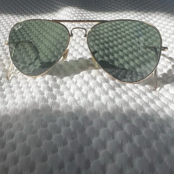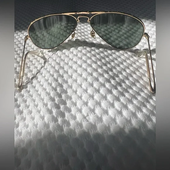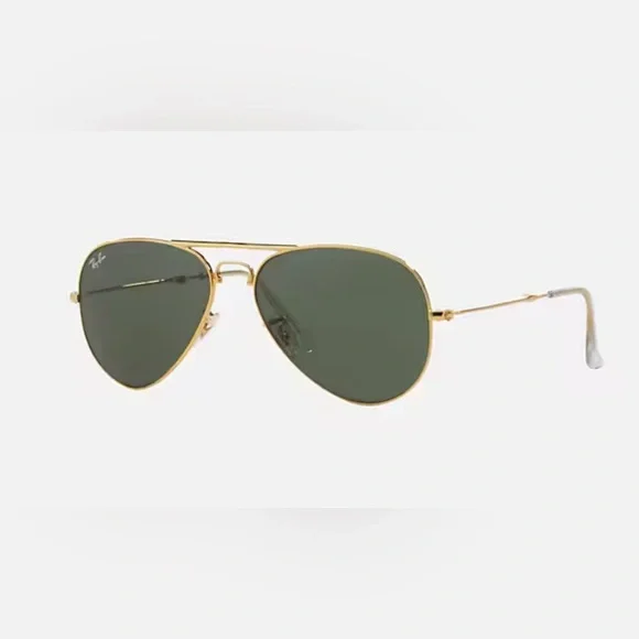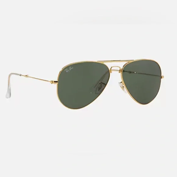 Good Condition Sunglasses Unisex MODEL CODE RB3479 001 58-14 LENSES COLORG-15 Green. FRAME SHAPEPilotFRAME COLORPolished Arista GoldFRAME MATERIALMetalTEMPLE COLORGold