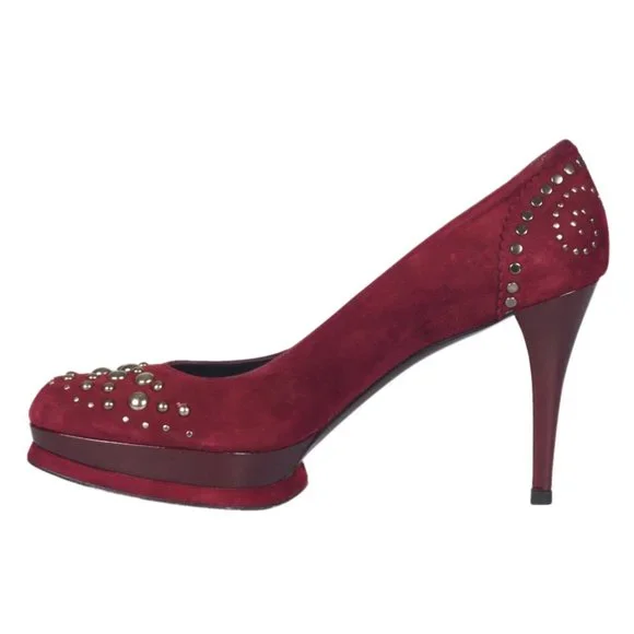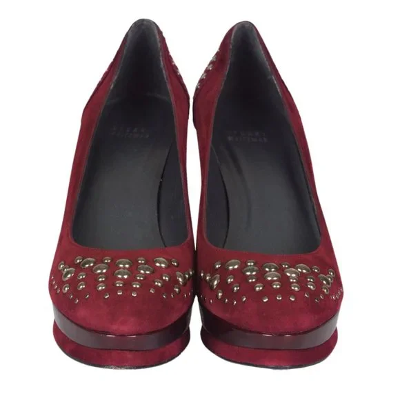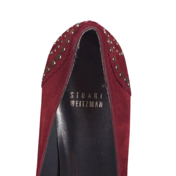 NEW Stuart Weitzman Studded Red Suede Stiletto Platform Pumps – Size 9.5 M