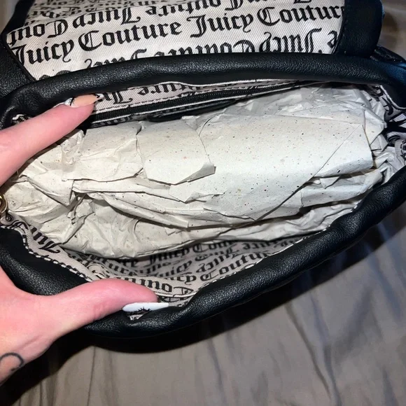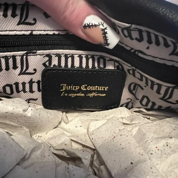 Juicy couture heart flap purse is brand new has a phone slip pocket in the back puffed out. Heart detailing has a large opening will fit all of your daily essentials, also has beautiful gold hardware