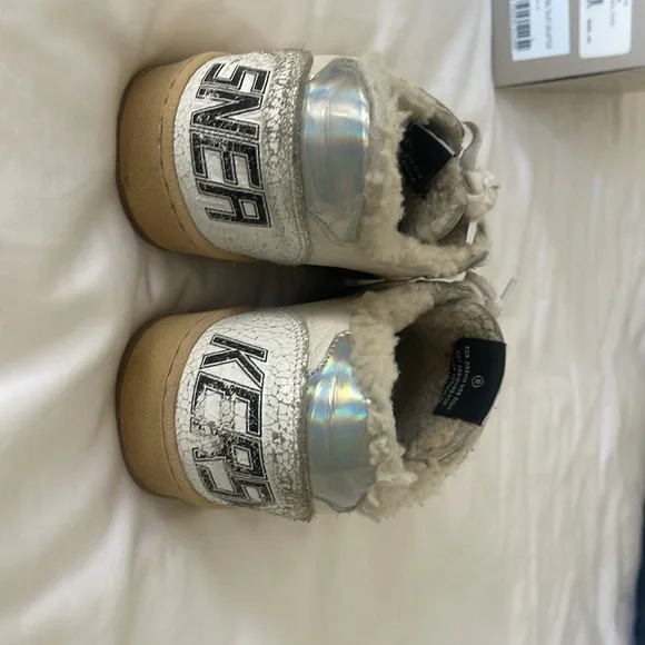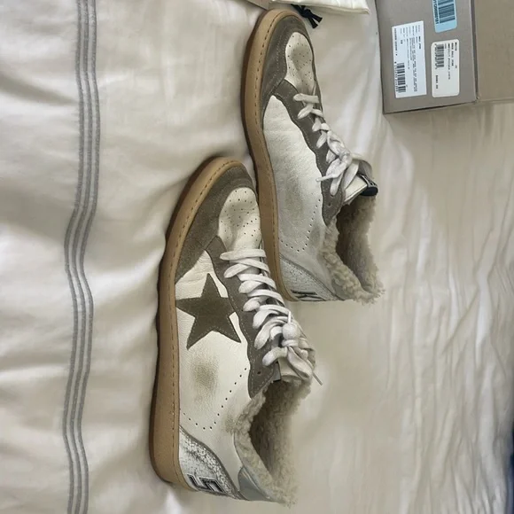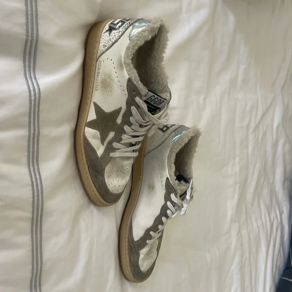 Golden goose Ball Star women’s sneaker sz 39Gently worn comes with original box and paperwork also never been used shearling liner for footbedWhite/Taupe/ SilverMade in ItalySZ 39/US 8.5