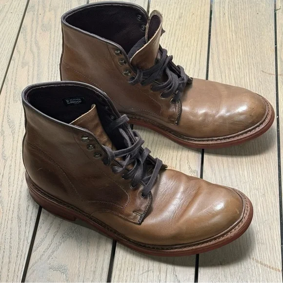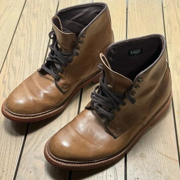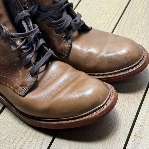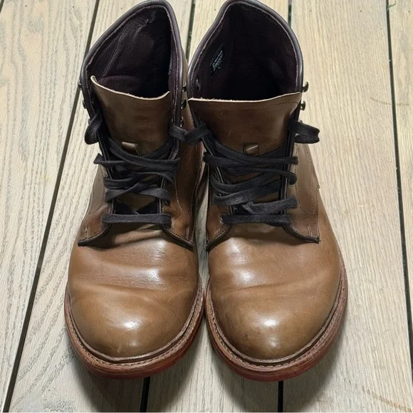 Allen Edmonds Higgins Mill Boot| Light Brown | 10.5 EGood preloved condition.Leather is outstanding.Daiinite solesA plain-toe boot is hand crafted in the USA and welted to a...