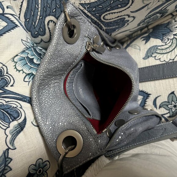 Hammitt Tony Small, great condition, sparkly, snake, brushed blue