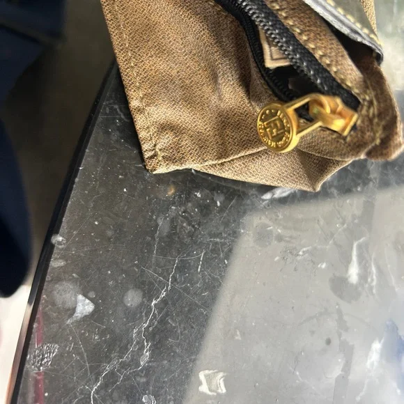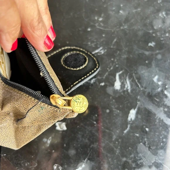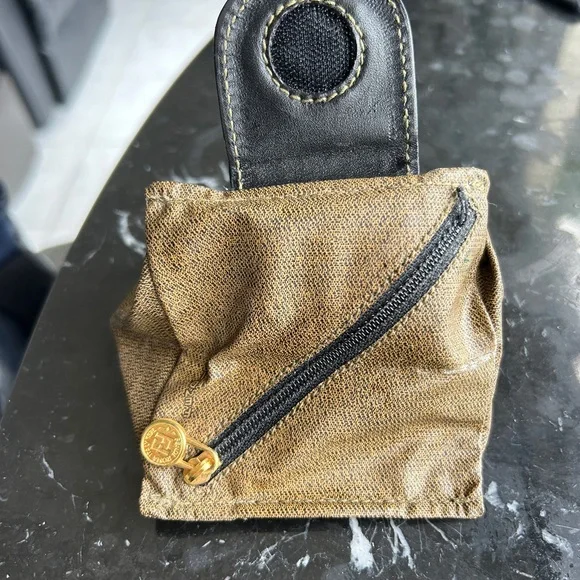 FENDI coin pouch light fabric canvas and leather
