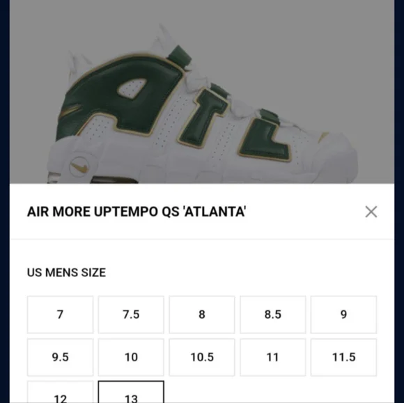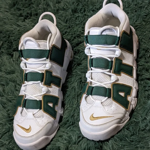 Nike Air More Uptempo ATL size 13. White Green Metallic Gold. Cheapest online ..swipe left
