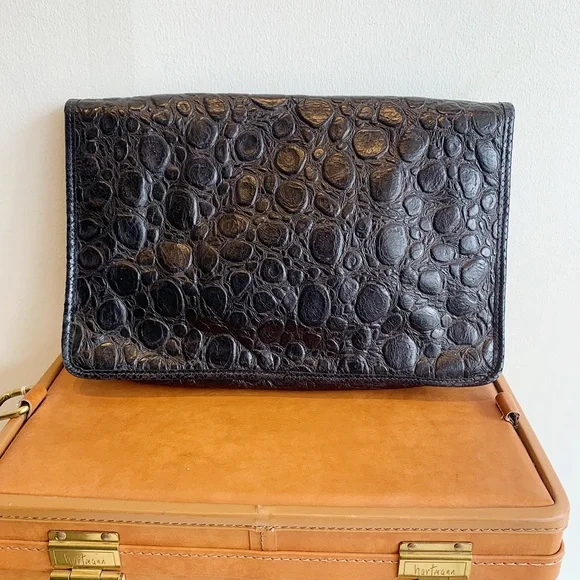Carlos Falchi leather black clutch
