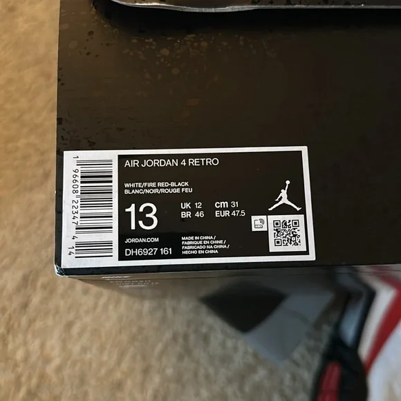 Air Jordan 4 Retro White / Fire red - blackNew condition Us mens 13