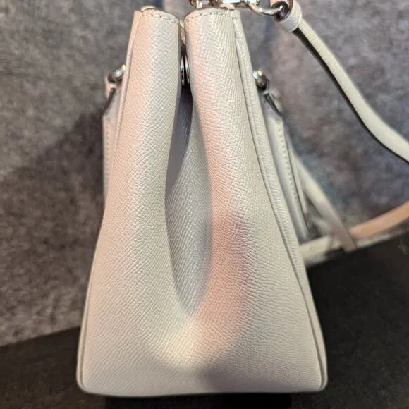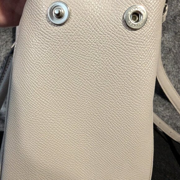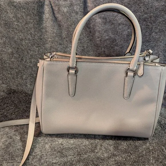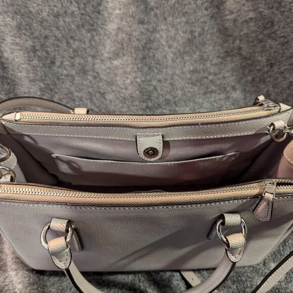 Coach Leather Surrey CarryallItem #F44958Immaculate nearly-new condition Large snap-close middle compartment with 2 inside slip pockets, and 2 zippered outer compartments Top handles and crossbody strapCoach hangtag and interior Coach labelClean inside and out. 11 1/2” long, 5” wide, 8” H