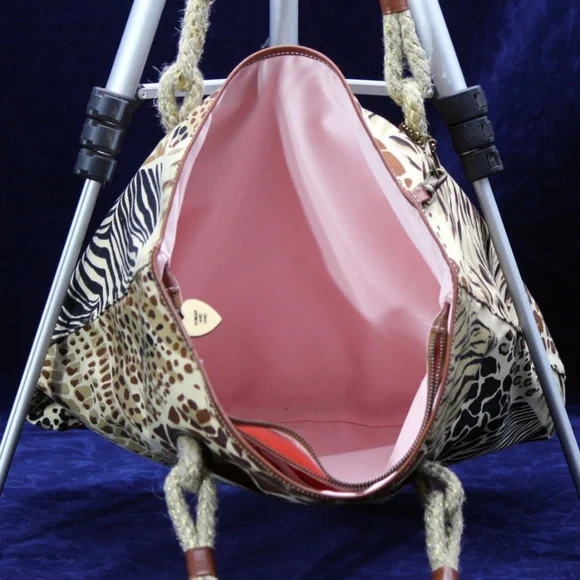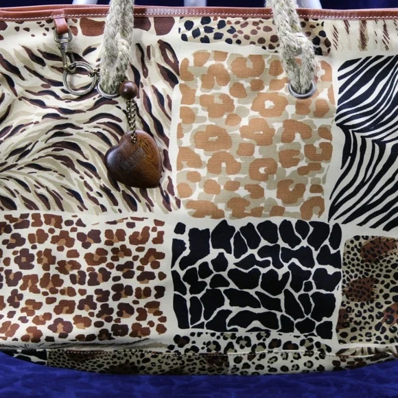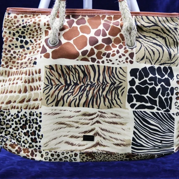 Moschino Animal Print Shoulder Tote Chic and Stylish. Gold threaded rope handle.Pink satin interior very clean like new, with interior zipper wall and a zipper pocketBeautiful vintage condition.All zippers and snaps work.No odors.Approx.13" tall15" long3" deep 11" dropThe items I sell are vintage, and therefore “used”. I do my best to take pictures of items in true color and and to describe condition. So please look at all pictures, and ask me questions if you have them, or ask for more pics. I usually have them, but I can only post 10. I do my due diligence regarding who made an item and when. I recycle much of my packing material and boxes, consider this when you receive your items.I pack ugly, but all my stuff gets there in one piece.For more info, please view our policies. Refund on shipping if estimate is over by $2 or moreOffers considered.