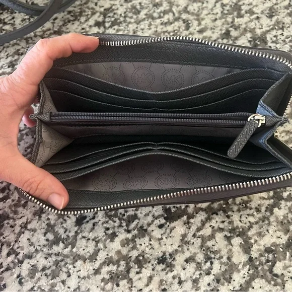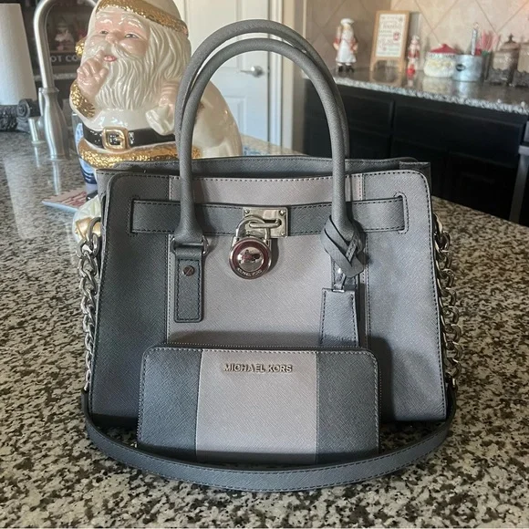 Satchel & Wallet Set with Dust BagGreat Condition- I only carried a handful of times!-only flaw is a little nick on one handle — see photoGrey genuine leatherGrey MK Signature...