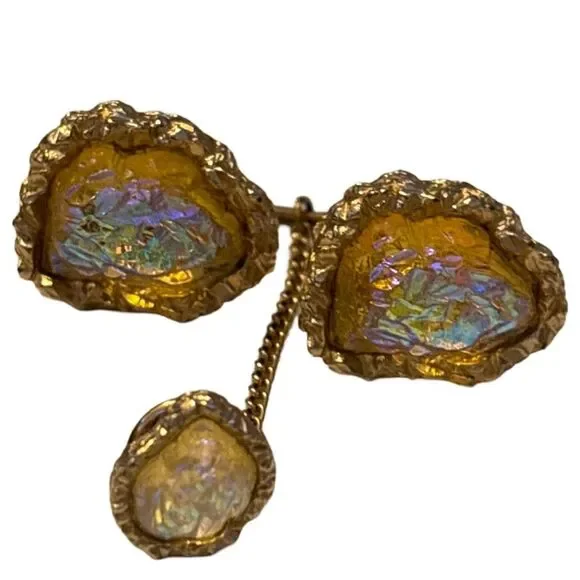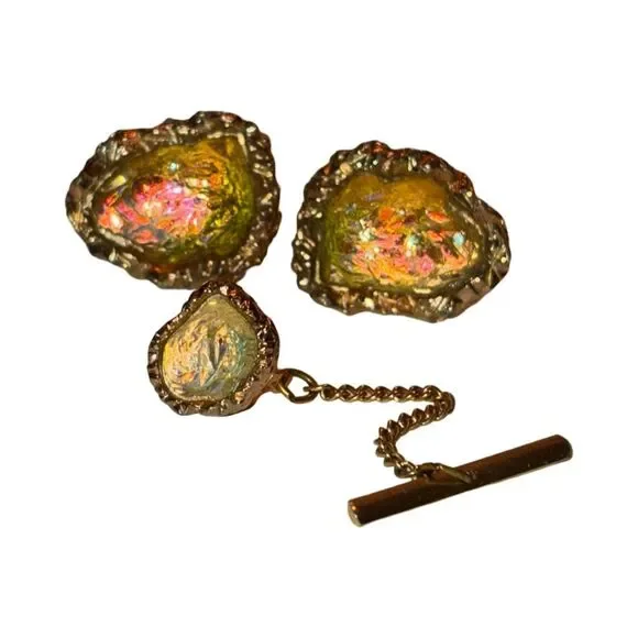 MCM Swank Glass Yellow Lava Cufflinks & Tie Tack Vintage Set