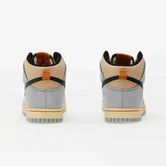 The Nike Dunk High SE hemp Hoops combines khaki-colored hemp canvas with suede overlays in Light Pumice. Contrasting black accents settle on the textile collar lining and leather...
