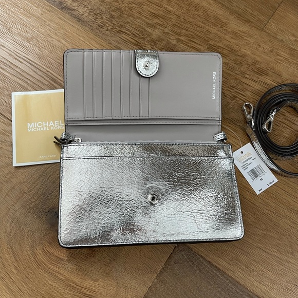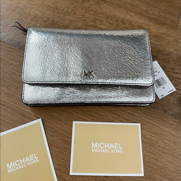 Michael Kors phone crossbody. Color is silver. New.
