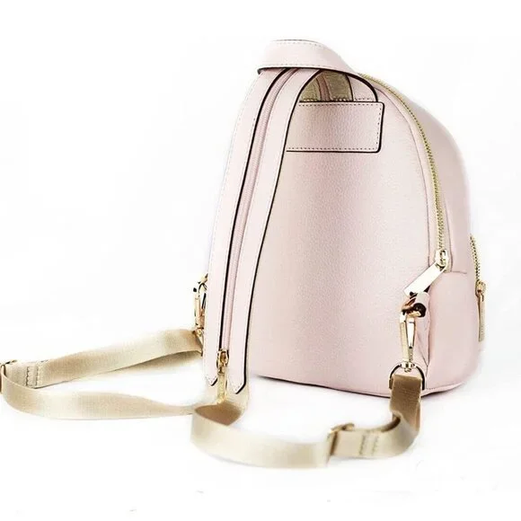 2-in-1 Luxury: Erin Convertible Backpack (Pink Perfection with Minimal Mark!)Embrace effortless elegance and convertible style with the Erin Backpack! This chic small-sized bag in a delicate powder blush hue instantly elevates your look, transforming from a sleek one-strap shoulder bag to a practical backpack with a simple zip pull. Crafted from luxurious pebbled leather with stunning gold-tone hardware, it´s a touch of luxury for everyday adventures.Key Features:Signature Style: Indulge in iconic design and impeccable craftsmanship, a timeless addition to your wardrobe.Convertible Versatility: Effortlessly switch between backpack and shoulder bag modes to suit your mood and needs.Powder Blush Dream: This soft shade adds a touch of feminine chic to any outfit, perfectly complementing both casual and polished looks.Organized & Practical: Keep essentials within reach with two interior pockets and an exterior zip pocket for added convenience.Minor Mark, Major Value: A very small ding in the leather on the front pocket offers a remarkable discount on this designer gem.Perfect for:Fashion-Forward Professionals: Elevate your office attire with effortless sophistication.Weekend Warriors: Embrace weekend adventures with style and practicality in one.Aficionados: Add a versatile piece to your collection with a unique touch.Anyone Who Craves Luxury & Convenience: Experience the best of both worlds with this convertible masterpiece.