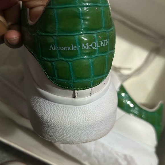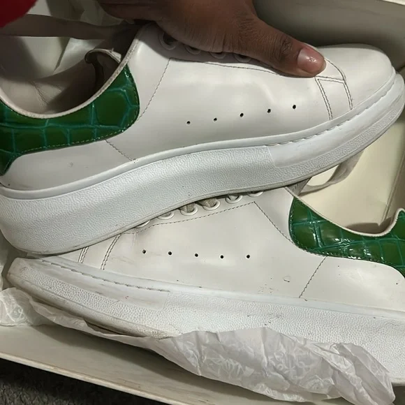 They a size 7 they have green snakeskin with lil blue outlines and they only been worn 3 times