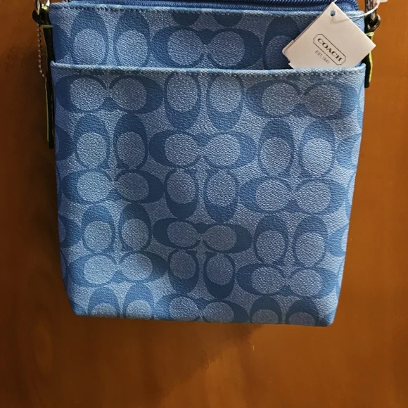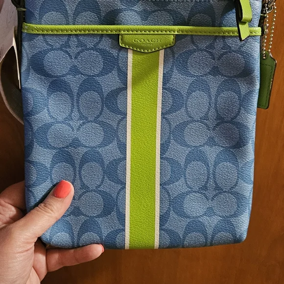Green and Blue crossbody coach Purse brand new with tags and cream strap
