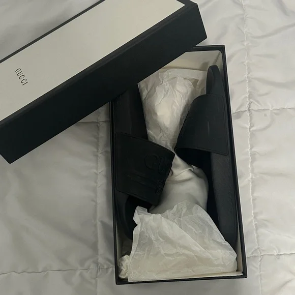 Step into comfort and style with the Black Logo Slide. Perfect for casual outings, these slides feature a sleek black design with the iconic logo. Ideal for those who appreciate luxury and simplicity.Size 39 and I normally wear a US 8