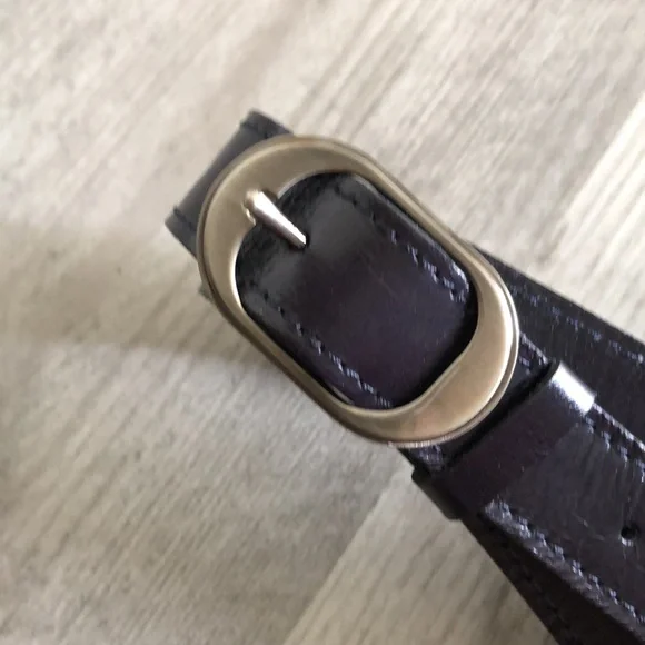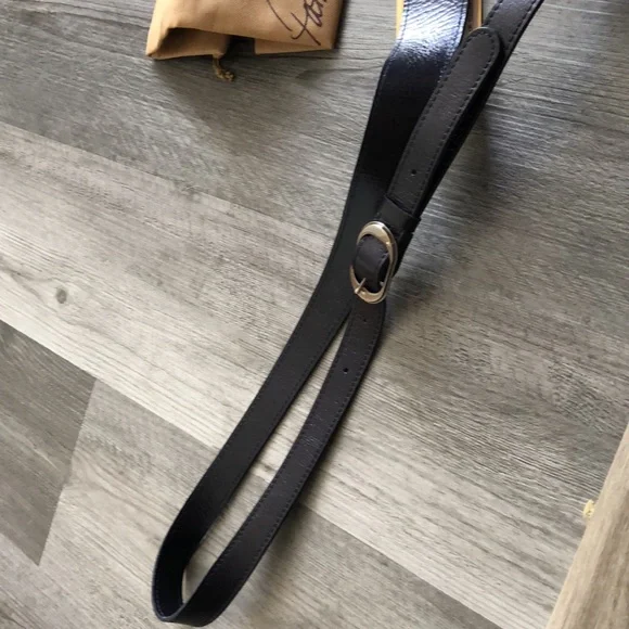 100% leather sling crossbody in the Positano Limon print on front & back of bag. Navy black sloped adjustable crossbody strap with strap drop of 26”. Strap with silver tone...