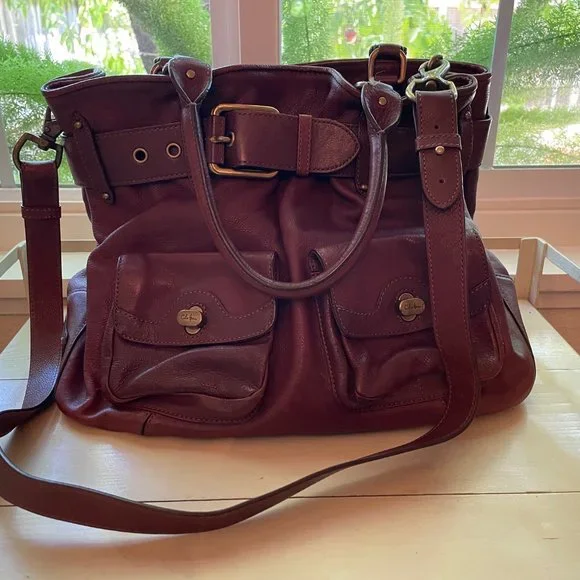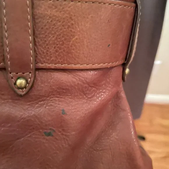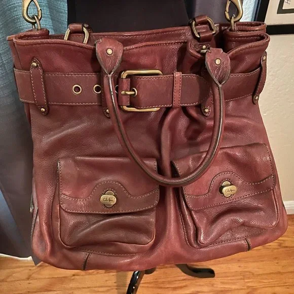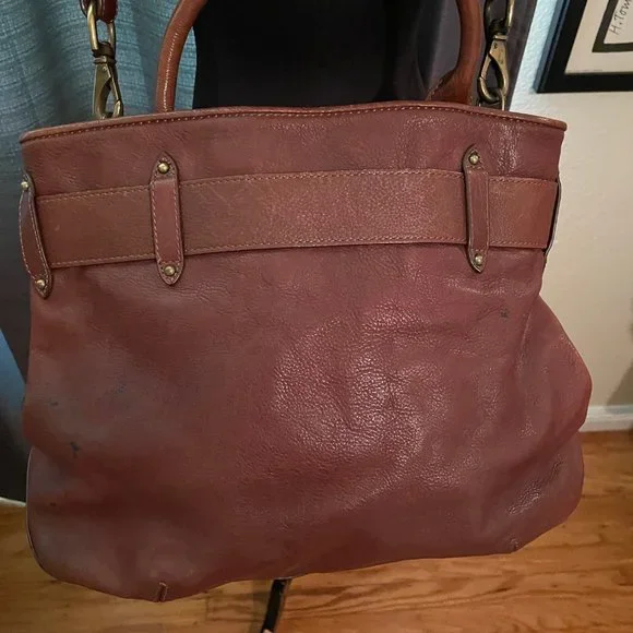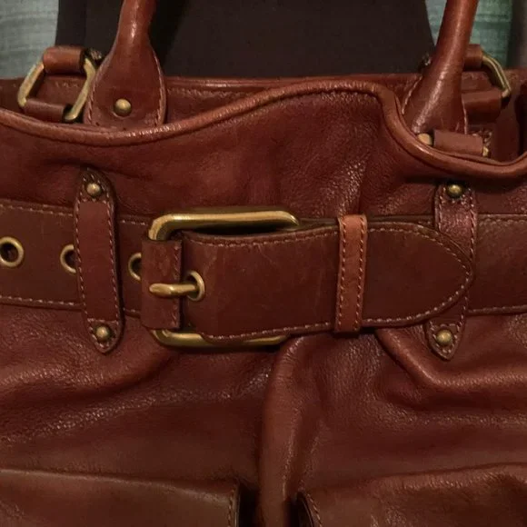 COLE HAAN Brown Pebbled Leather Satchel/Tote Shoulder Bag/Buckle Detail