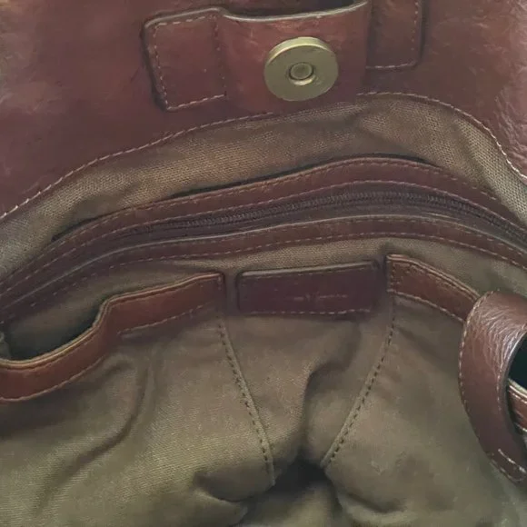 COLE HAAN Brown Pebbled Leather Satchel Shoulder BagStraps to Carry by HandBrass Buckle & Hardware DetailsInside Snap Closure 2 Front Pickets with Toggle ClosureInside 1 large zip...