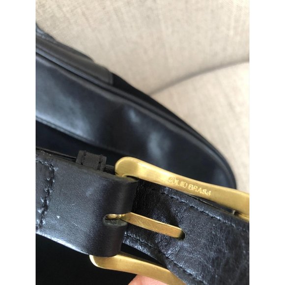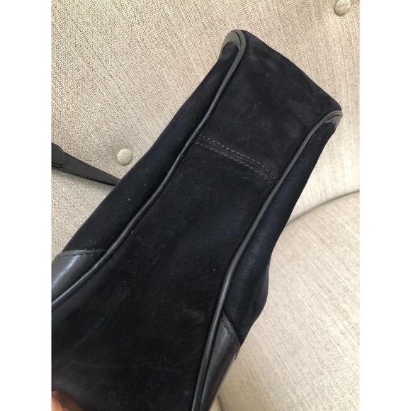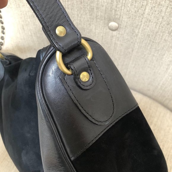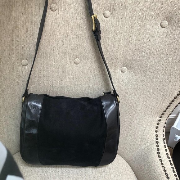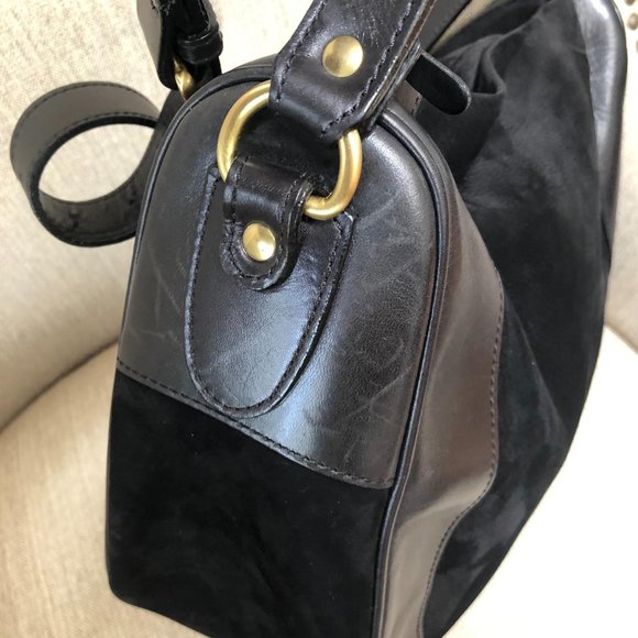 Some minor scratches on leather. One tiny spot on suede that is hard to see. In excellent condition otherwise. made in USA