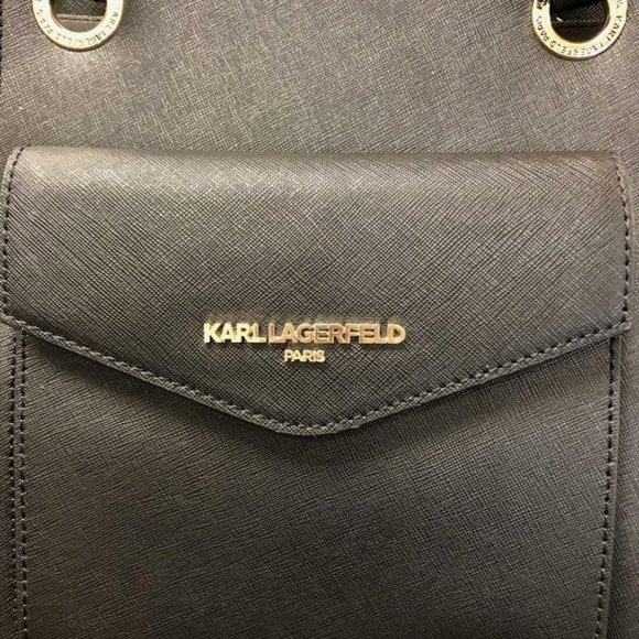 NEW! KARL LAGERFELD PARIS Black Tote Bag Saffiano Leather PURSE Pocket Satchet(I own the BEIGE too in case you are interested)Gold tone hardwareSaffiano leatherDouble handles,...