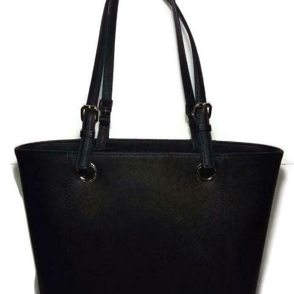 NEW! KARL LAGERFELD PARIS Black Tote Bag Saffiano Leather PURSE Pocket Satchet(I own the BEIGE too in case you are interested)Gold tone hardwareSaffiano leatherDouble handles, 11.5 inch dropZipper closureFront snap pocketInside zipper pocketInside slip pocketsFully lined11"W x 9.5"H x 5"DWidth at top is 15"