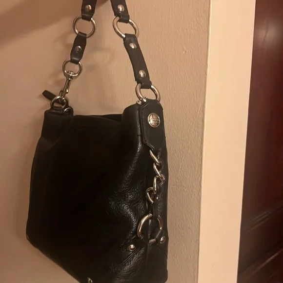 Comfortable mid size shoulder bag withh zippered opening and interior zipper pocket