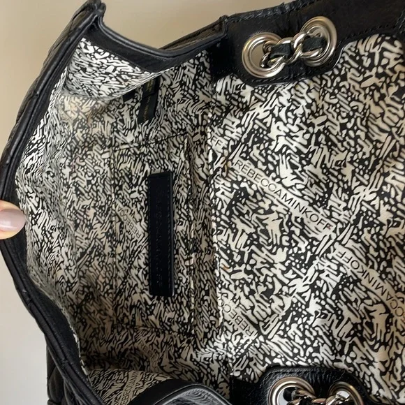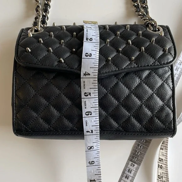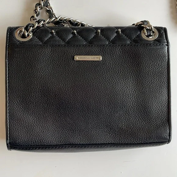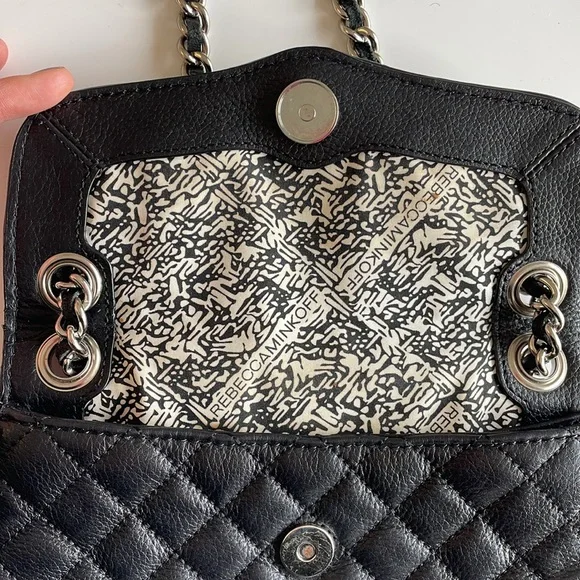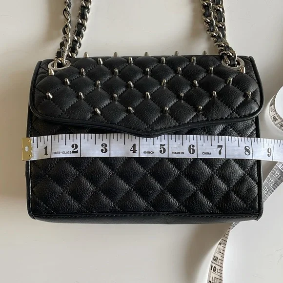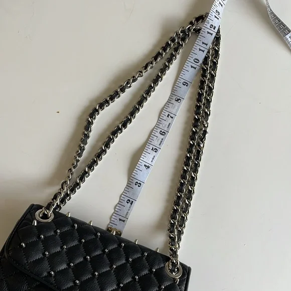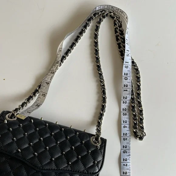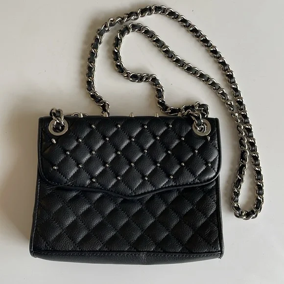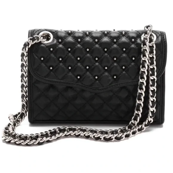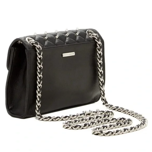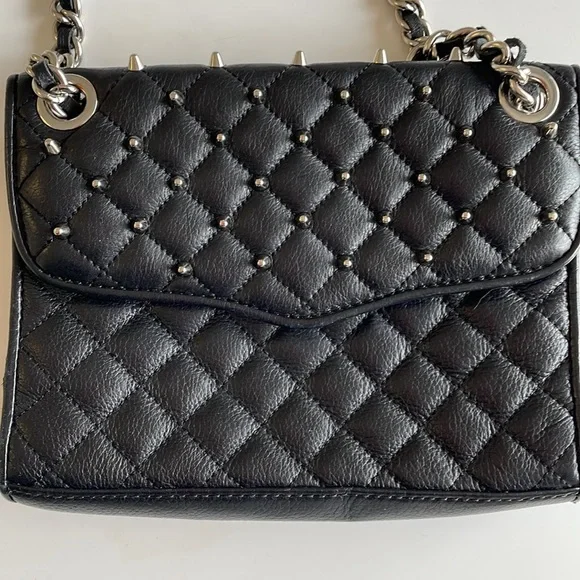 Rebecca Minkoff Black Quilted Crossbody Bag with Silver Chain and Studs