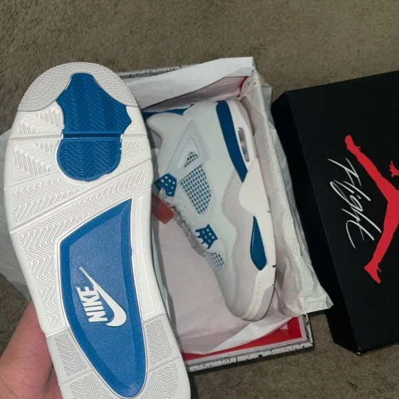 Brand new never worn Jordan 4 military blueWilling to take offers!!ITS CHEAPER IF YOU CAN BUY IT OFF ME ON MERCARI!!! Message me on mercari that you’re fromand I will give you $20 OFF !