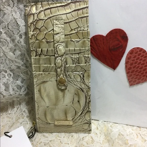 FINAL DRIP, no offers.NWT BRAHMIN SAND DUNE MELBOURNE CREDIT CARD WALLET - BUNDLE DISCOUNT ONLYBrahmin Plaque, Zipper Closure(10) Credit/Business Card Slots, (1) Clear ID WindowZipper PocketApproximate Measurements: 7"L x 3"HFeatured in Sand Dune Melbourne, Genuine croc-embossed leather.