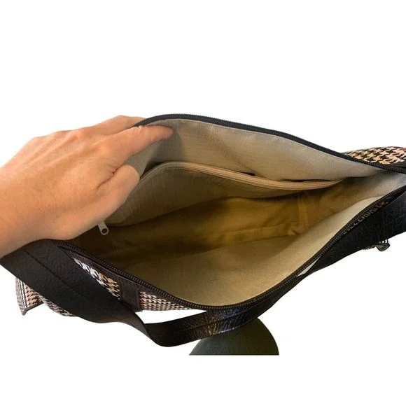 Bosca Tweed Shoulder Purse Side Pockets, large, zipper, Computer bag EUC