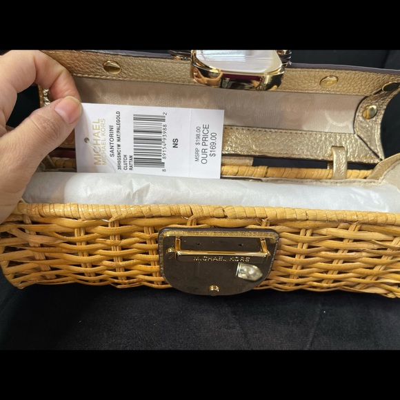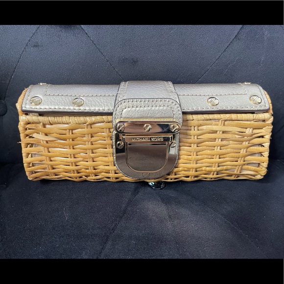 New Michael Kors Santorini Wicker Clutch. Perfect for spring. New with tags. My IPhone 12 Max fits, so it has space for a big phone. 10x6