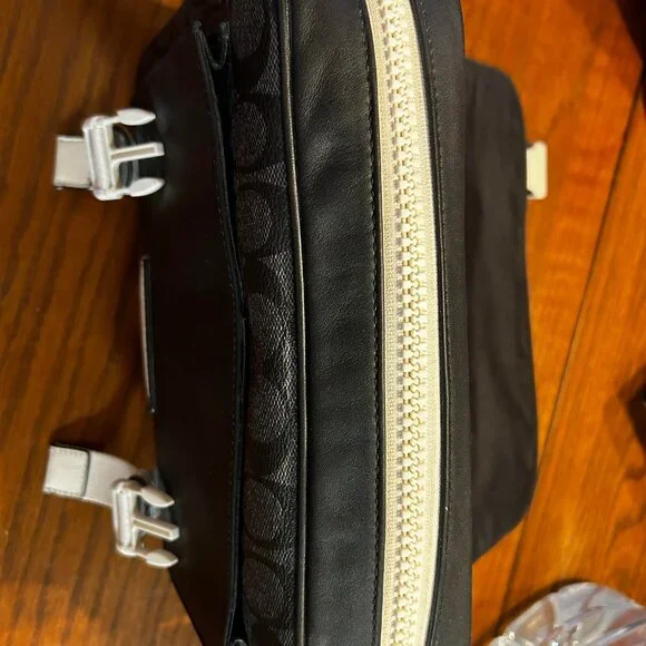 Coach Track Crossbody Unisex Bag, Black and WhiteNote: this bag has been sitting around and collecting dust, needs a little tender and loving care. There is a small smudge at the top of the bag. This is AUTHENTIC and was bought at the Coach store in Anthem, AZ during one of their huge sale events.This specific item is no longer available with Coach, due to the limited quantity, I am asking for more than I bought it for. Current this retails anywhere on line from other sellers $206-$488Product Details:Signature coated canvas and smooth calf leatherInside multifunction pocketsZip and speedclip closures, fabric liningOutside slip pocketAdjustable strap with 25´´ drop for shoulder or crossbody wear10 1/2´´(L) x 7´´(H) x 2 1/2´´ (W)This bag DOES NOT come with a Coach dust bag.My price is negotiable please feel free to make an offer.