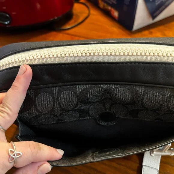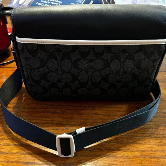 Coach Track Crossbody Unisex Bag, Black and WhiteNote: this bag has been sitting around and collecting dust, needs a little tender and loving care. There is a small smudge at the...